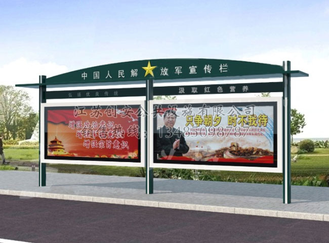 宣傳欄廠家-江蘇創(chuàng)安公共設施有限公司是一家國內(nèi)知名的專業(yè)從事宣傳欄,公交候車亭,精神堡壘,法治宣傳欄,消防宣傳欄,部隊宣傳欄,校園文化宣傳欄整體規(guī)劃、設計、生產(chǎn)制作、安裝、售后服務及產(chǎn)品研發(fā)于一體的宣傳欄制造有限公司。